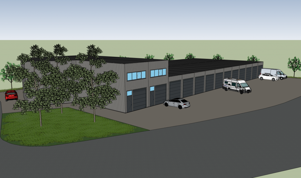 Het complex wordt bouwkundig geschikt gemaakt voor het plaatsen van pv-panelen. De overheaddeuren zijn 40mm dik en zullen in de antraciet kleur gespoten worden. Voor de bedrijfsunits heeft de begane grond betonvloer een draagkracht van 1500kg/m2. De optionele verdiepingsvloer heeft een draagkracht van 350kg/m2. Verdiepingsvloeren kunnen uit hout of uit een betonnen kanaalplaat vervaardigd worden. Tussenwanden worden standaard vervaardigd uit sandwichpanelen en kunnen vervangen worden door cellenbetonblokken. Bekijk de brochure voor alle meerwerk mogelijkheden en bijbehorende meer- of minderwerkprijzen.